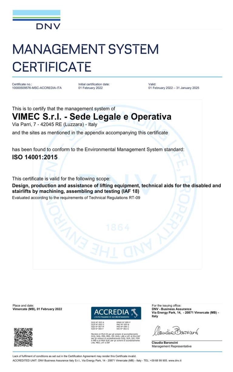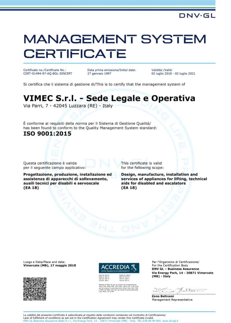 Лифты и подъемники VIMEC сертифицированы по самым строгим Европейским стандартам (вся наша продукция имеет CE сертификацию).